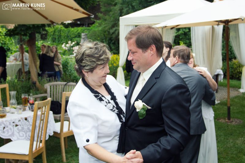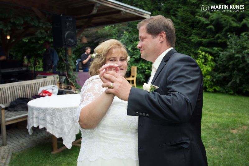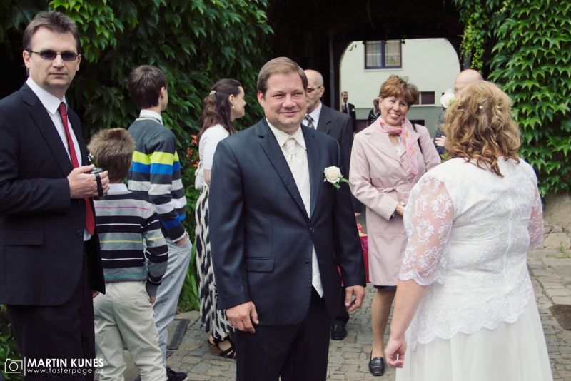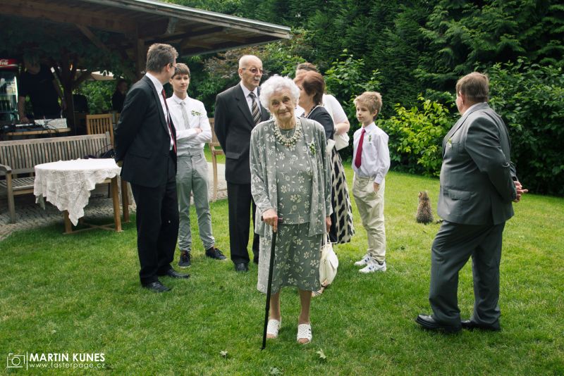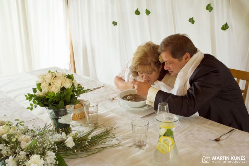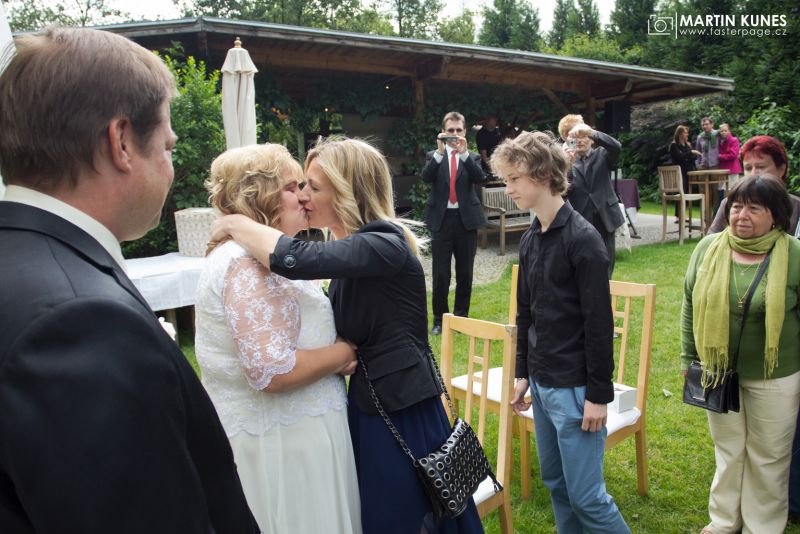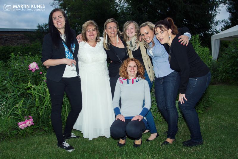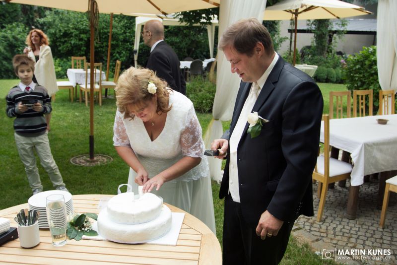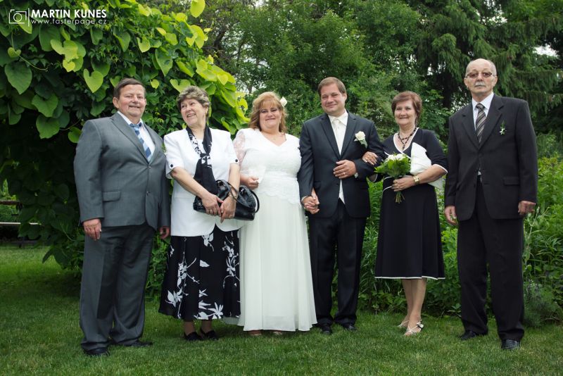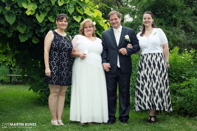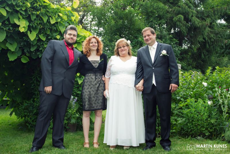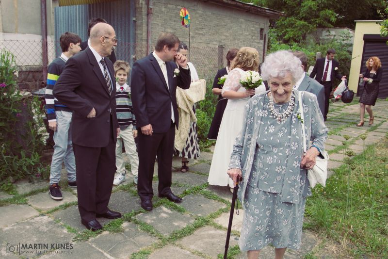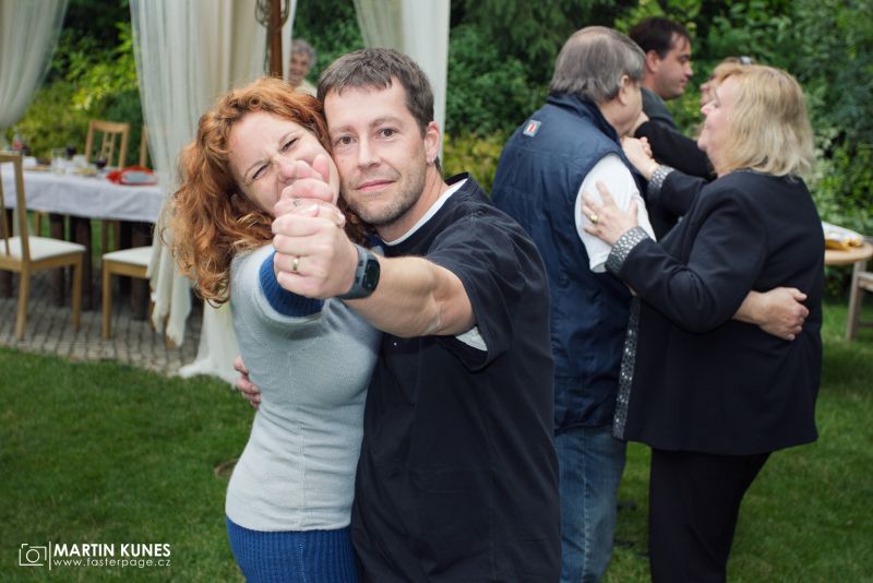 Celá svatba se měla odehrávat v restauraci „Čajovna“ v Říčanech u Prahy, respektive v jejích zahradách. Zde musím pochválit výběr prostor, mají to tam opravdu nádherné, všude spousta místa a otevřený prostor opět napomáhal k naprosto neformální a uvolněné náladě. Obřad samotný byl velmi stručný, což ocenili především rodiče s dětmi, ale zároveň obsahoval vše potřebné a žádoucí. Po obřadu nastoupila pěkná řádka gratulantů a já si teprve v tu chvíli uvědomil, kolik nás tam vlastně je. Jakmile jsme všichni poblahopřáli, mohli jsme se pustit do pár fotek čerstvých novomanželů a hned na to jsme se přemístili na hostinu, naštěstí to nebylo daleko, tipnul bych tak deset kroků.