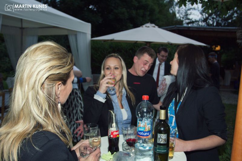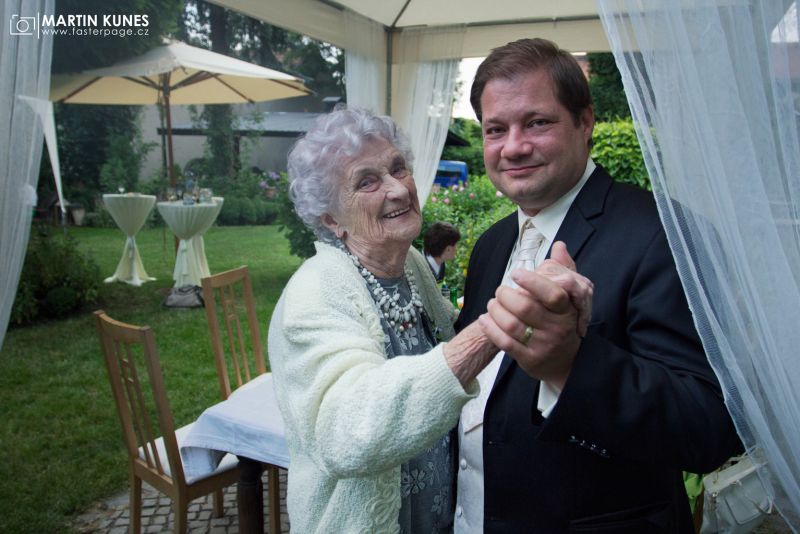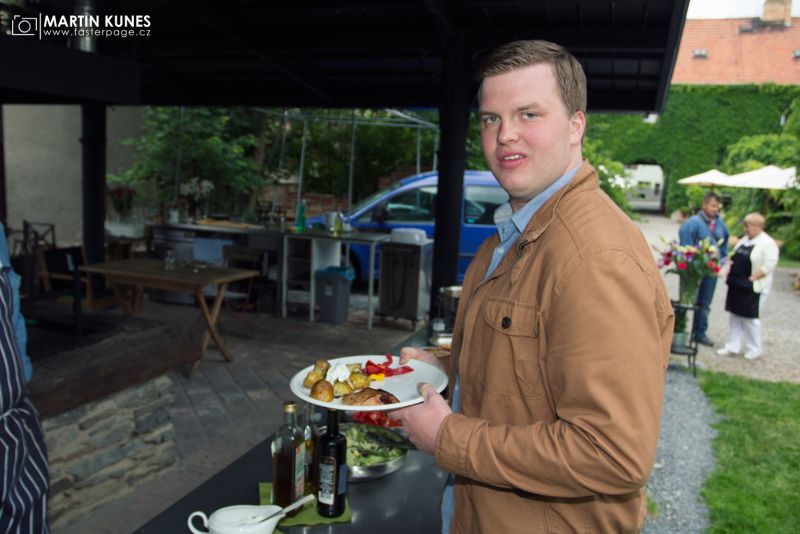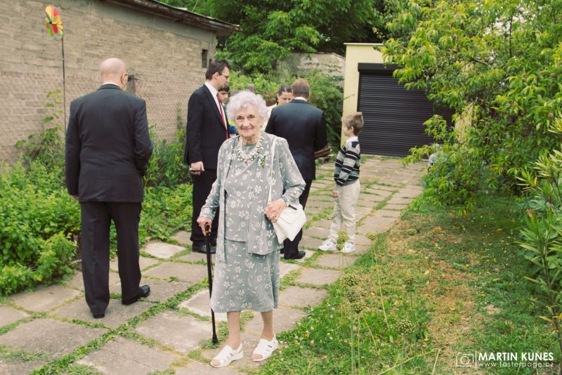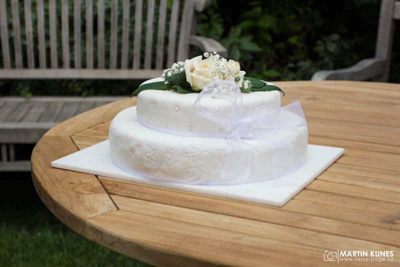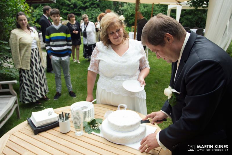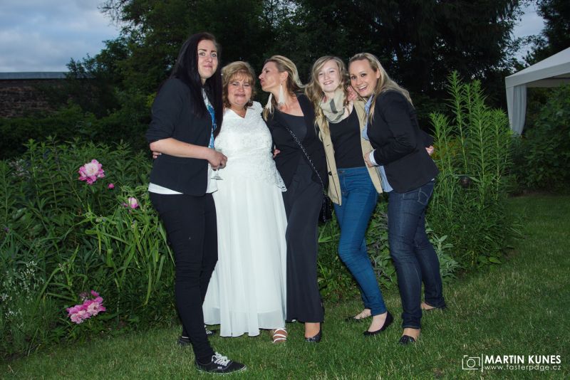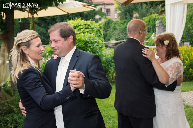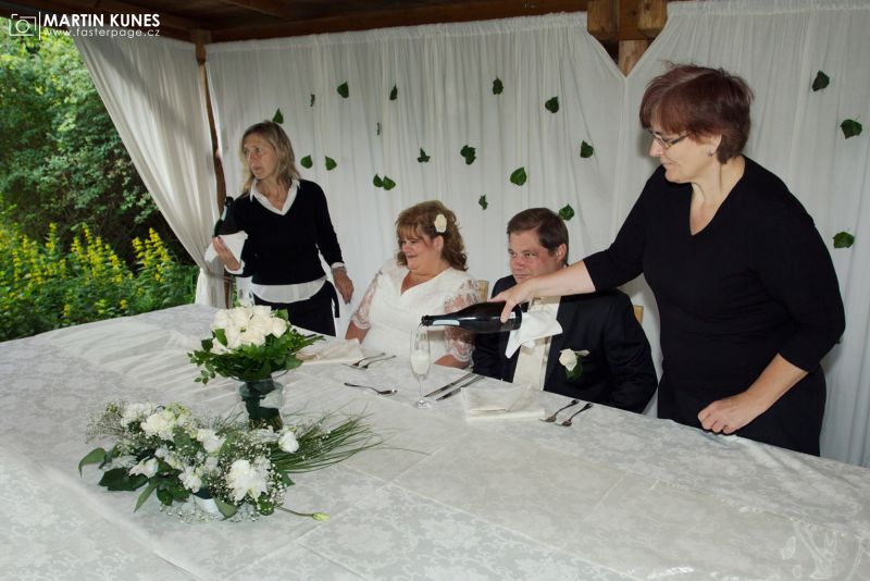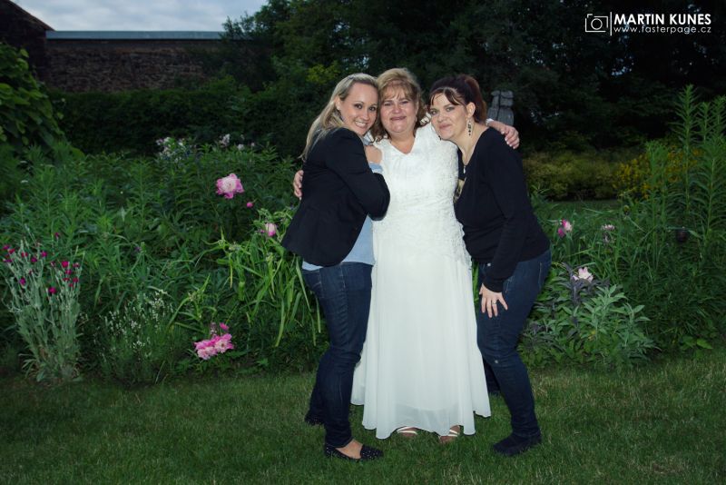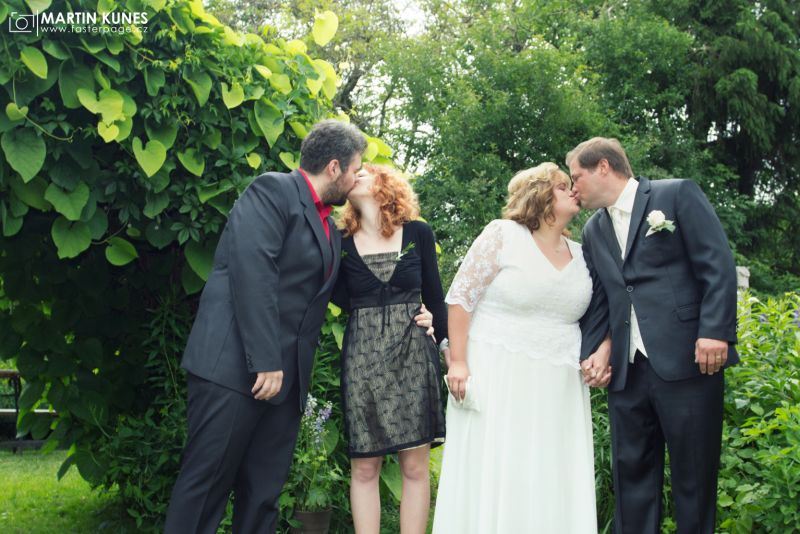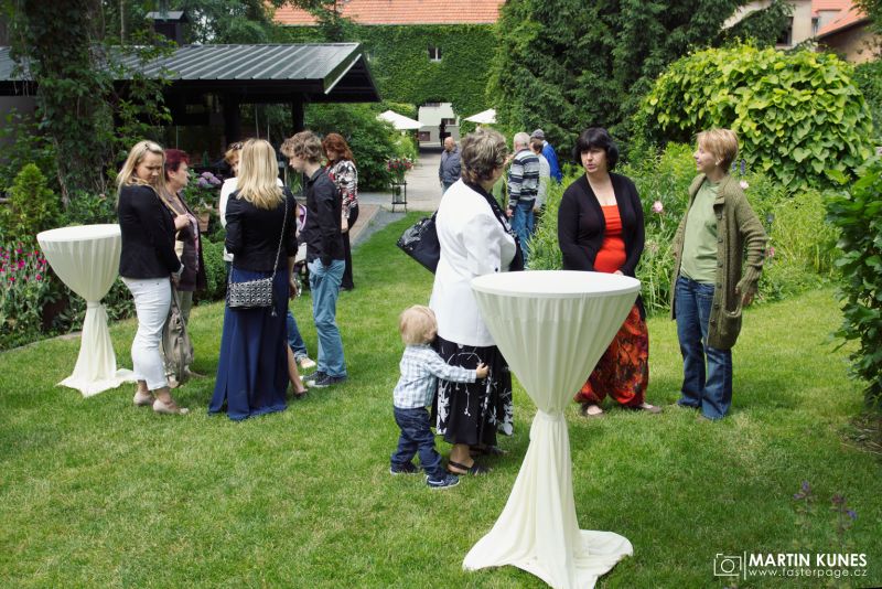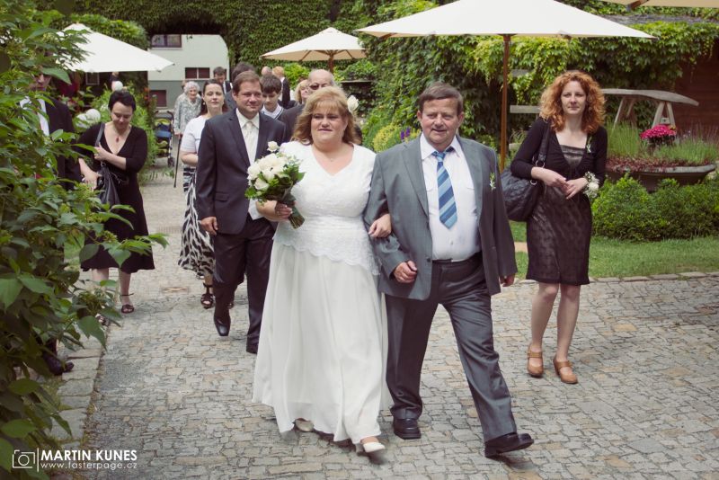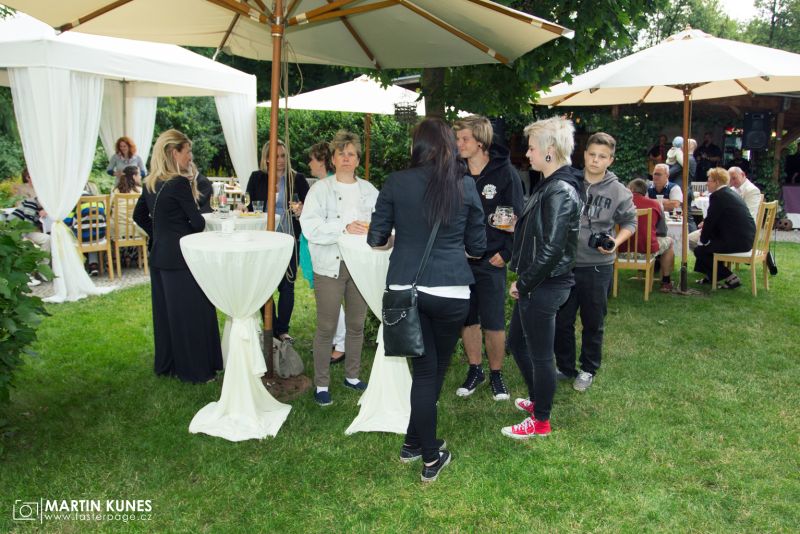 Celá svatba se měla odehrávat v restauraci „Čajovna“ v Říčanech u Prahy, respektive v jejích zahradách. Zde musím pochválit výběr prostor, mají to tam opravdu nádherné, všude spousta místa a otevřený prostor opět napomáhal k naprosto neformální a uvolněné náladě. Obřad samotný byl velmi stručný, což ocenili především rodiče s dětmi, ale zároveň obsahoval vše potřebné a žádoucí. Po obřadu nastoupila pěkná řádka gratulantů a já si teprve v tu chvíli uvědomil, kolik nás tam vlastně je. Jakmile jsme všichni poblahopřáli, mohli jsme se pustit do pár fotek čerstvých novomanželů a hned na to jsme se přemístili na hostinu, naštěstí to nebylo daleko, tipnul bych tak deset kroků.